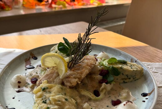 Filet vom Wels - gebettet auf einem Kartoffel-Schwarzwurzelpüree, dazu Spitzkohl-Cranberry-Gemüse und abgerundet mit einem Salbei-Fenchel-Schaum. Und ja, es schmeckt genau so gut wie es aussieht 🤤