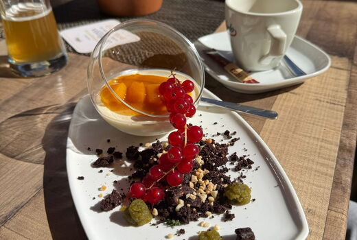 Bock auf was geiles süßes? Das haben wir was! Vanille-Panna Cotta mit Minzgel, Pfirsich-Ingwer-Vanille-Ragout und Schokocrumble. Wow! Einfach eine Geschmacksexplosion. Seid schnell denn dieses grandios Dessert gibt’s nur solange der Vorrat reicht 😂
