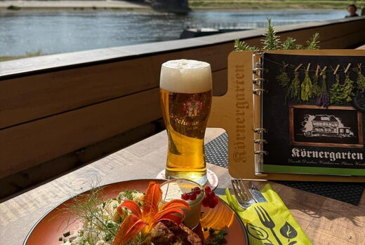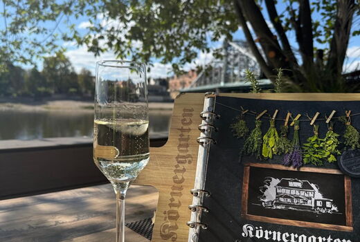 "Tolle Lage an der Elbe mit Blick aufs Blaue Wunder. Sehr, sehr gute Bedienung. Das Essen hat lecker geschmeckt. Auf der Speicherkarte ist für jeden etwas dabei. Ich kann den Körnergarten nur weiterempfehlen."