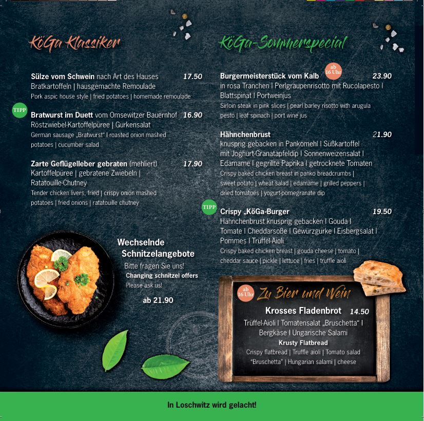 Nehmen Sie Platz, genießen Sie das wunderbare Ambiente, freundlichen Service und entdecken Sie moderne-sächsische Küche - frisch & mit Liebe zubereitet.