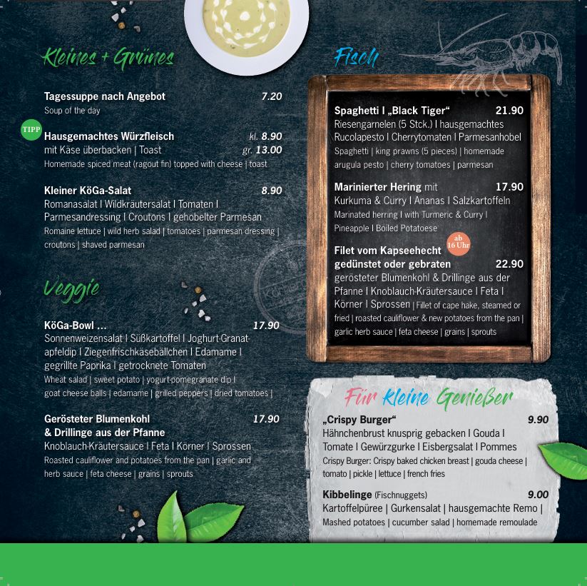Unsere Karte im Restaurant, auf Terrasse & im Biergarten